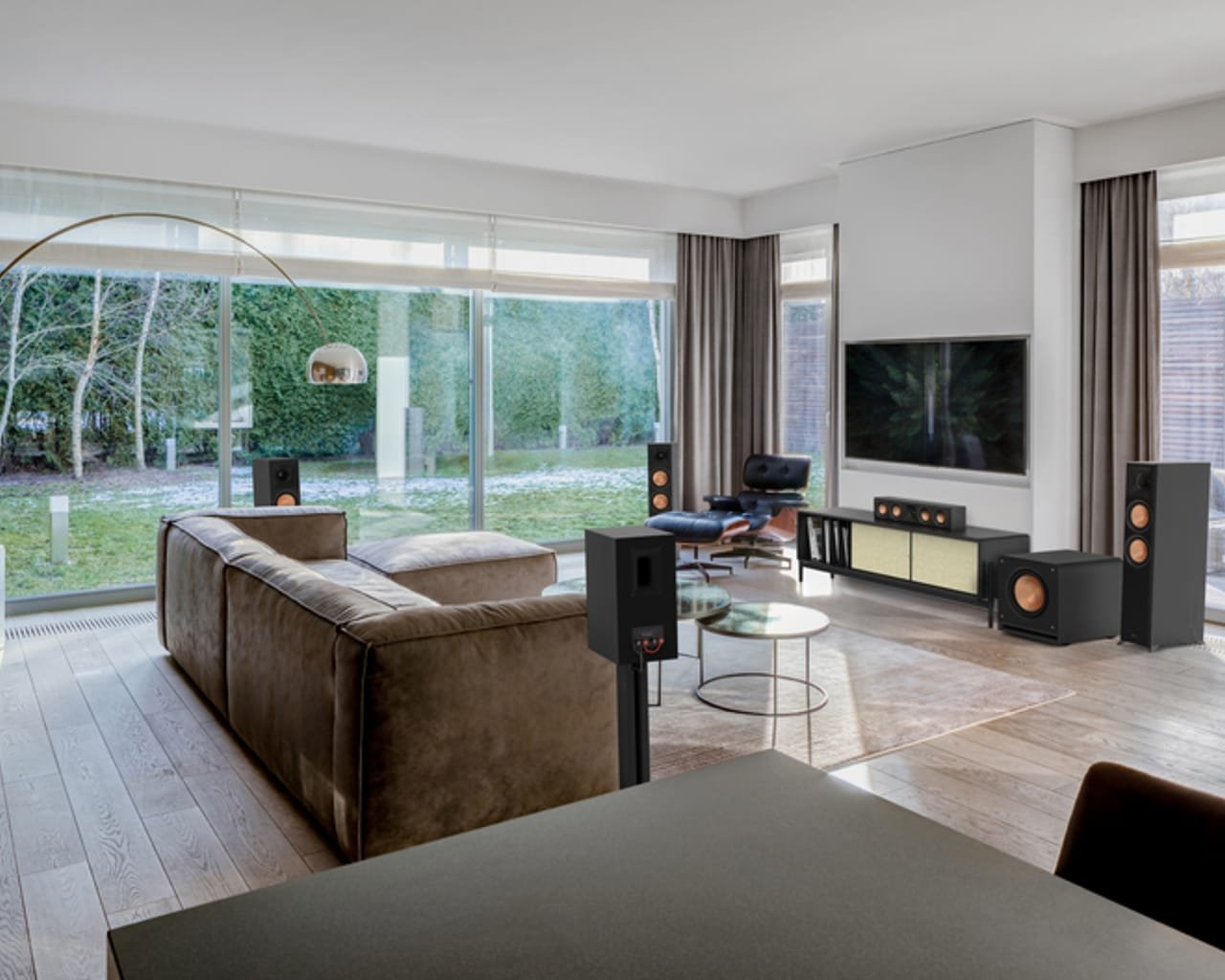 - Enceintes Klipsch Référence + ampli Denon X1800H : une configuration élégante et puissante, avec enceintes visibles, pour un son clair, profond et vivant.